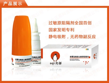 该产品为喷雾型,纯物理治疗,使用方便,依从性好,既可单独使用,也可与其它药物配合使用,能显著提高治疗效果,减轻患者的痛苦,是目前国内唯一运用电荷吸附原理降低过敏原浓度的喷雾型阻隔剂。