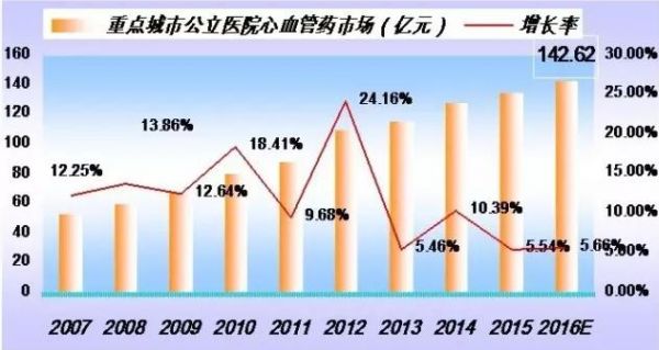 阿托伐他汀是中国调血脂市场领导品牌,也是心血管大类中的领军品种。据HDM系统数据显示,2016年国内重点城市公立医院阿托伐他汀药物市场为12.50亿元,比上一年增长了5.97%,中国他汀药物已占据心血管市场16.36%。