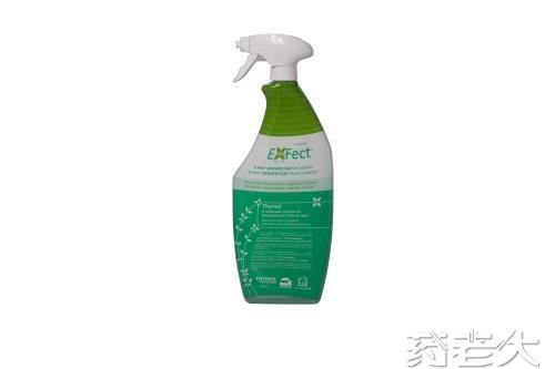 E-Fect的优势:专业:·独特的Thymox?技术,降低抗菌素耐药性。 ·获DIN药物识别码,经加拿大卫生部认可标识。有效:·广谱杀菌剂:既是杀菌剂,也是消毒剂。 ·3分钟内有效杀死99.99%的微生物、细菌、真菌及结核菌。安全:·温和、无毒、不刺激;不含氯、氨及合成香料。 ·由纯天然植物活性成分和表面活性剂提炼而成,无腐蚀性。广泛:·不损伤硬质或软质表面。可用于食物表面、制作及保存。与食物表面接触消毒后必须用饮用水冲洗。 ·PH值中性,不损伤工作台表面如层压板、密封花岗岩、搪瓷、油漆/涂漆、木材和塑料表面。 ·可兼容大多数金属、合金橡胶和塑料;无染色。天然:·由百里香精油提炼麝香草酚而成,其他98%来自可再生能源。 ·清新植物香型。环保:·在14天内100%生物降解。