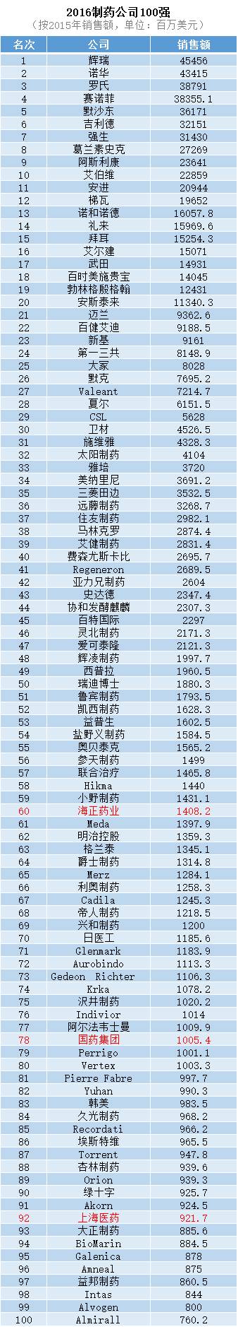 其中,值得注意的是,本次有三家中国的本土药企上榜,分别是海正药业、国药集团、上海医药,分列第60、78、92位。