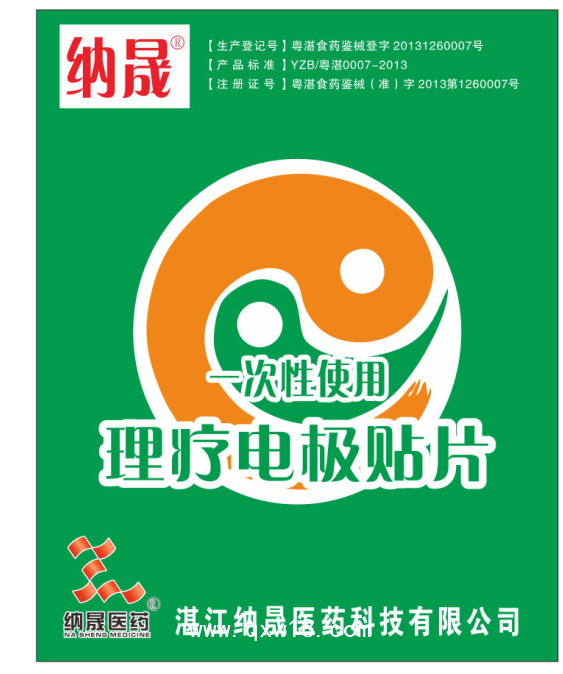纳晟一次性使用理疗电极贴片主要用于穴位或损伤部位敷贴、灸疗及中医定向透药治疗,与合法注册的超声康复、超声脉冲电导、经穴脉冲、复合脉冲磁、智能通络、中、低频、药物导入、智能数码多功能治疗仪及其他经皮靶向给药治疗设备等理疗仪器使用,也可由医疗机构根据需要在理疗贴片上添加相应的有合法资质的贴剂进行针对性的理疗。批准文号:粤湛食药监械(准)字2013第1260002,医疗器械招商企业纳晟一次性使用理疗电极贴片招商产品。纳晟一次性使用理疗电极贴片招商详情请进入>>