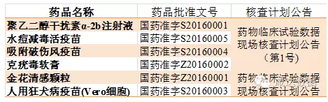 截止至2016年11月28日,在接受药物临床试验数据现场核查的品种中,共有6个品种获批,其中4个生物制品,2个中成药。