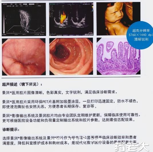 放射科医用干式胶片,批准文号:苏通械备20140005号,医疗器械招商企业江苏景润医疗器械有限公司招商产品。用于医疗诊断和治疗中各型医疗诊疗结果发布媒介。包括各种检验、体检、超声、三维重建、病理、彩色胶片照相、CR、DR、MRI、RVG、口腔、牙片、眼科影像、红外乳腺、阴道镜、各型光学窥镜与电镜、建模预测等各类医疗报告。放射科医用干式胶片招商详情请进入>>