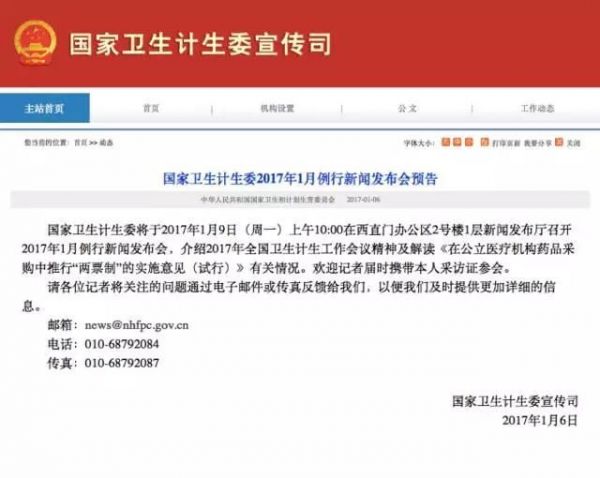 按照国家卫计委官网1月6日晚间公开的信息,今日,备受社会关注的《在公立医疗机构药品采购中推行“两票制”的实施意见(试行)》(下称“两票制“)将正式对外公布。