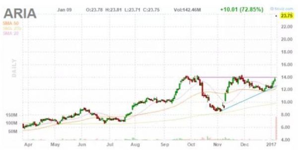 如今,武田收购消息大大提振了股价,Ariad从最低的接近8美元一跃上涨到23.8元一股。