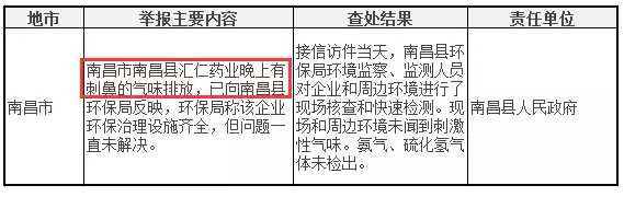 江西省环境保护厅官网显示,在2016年7月27日《中央环境保护督察组交办江西省环境信访案件调查处理进展情况通报》中,汇仁药业因“晚上有刺鼻的气味排放”而接受查处。