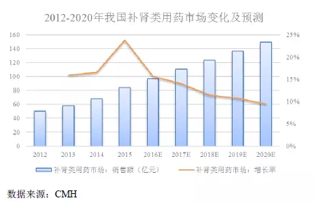 据CMH数据,2015年之后,我国补肾类用药市场将结束2013到2015年的高增长趋势,此类用药市场增长率将会连年下降。