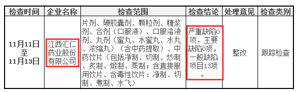 2017年1月11日,汇仁药业被江西省食品药品监督管理局爆出,其在中药饮片等制作过程中存在一般缺陷项目13项,并责令整改。
