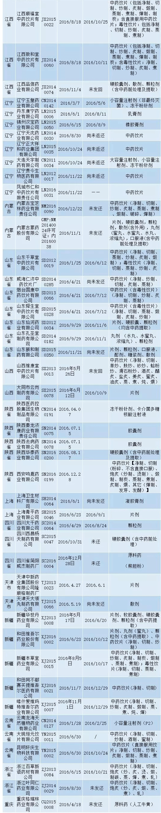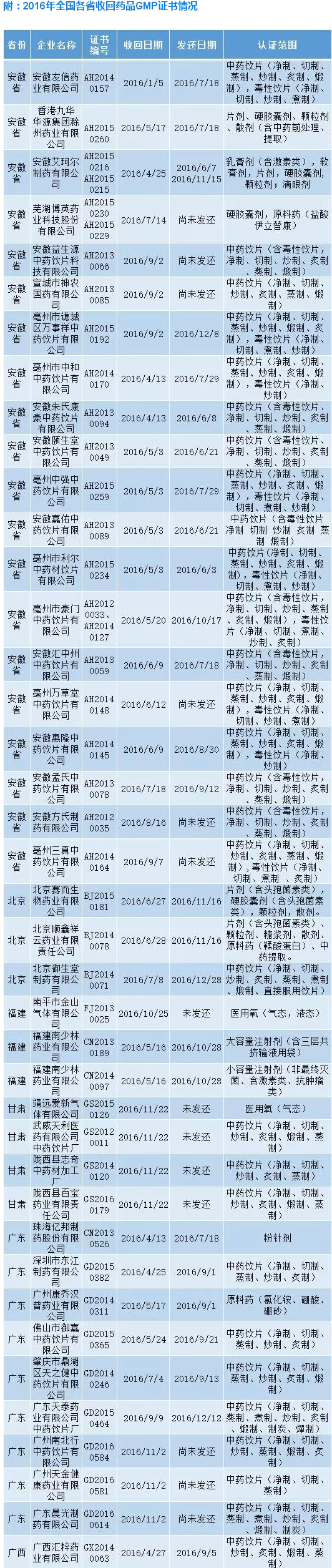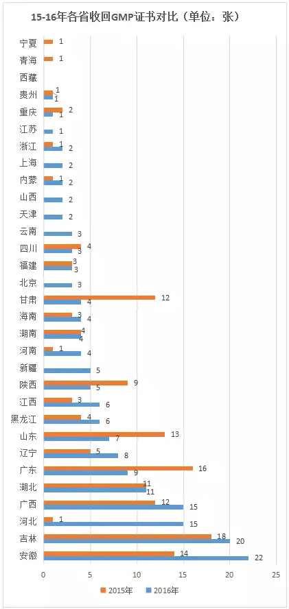 2月8日,国家食药监总局公布《2016年全国收回药品GMP证书情况统计表》。