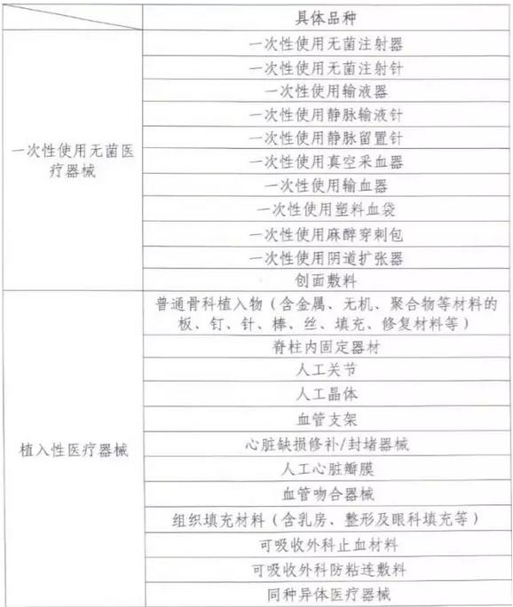 其中,无菌、植入性器械的具体检查品种目录如下: