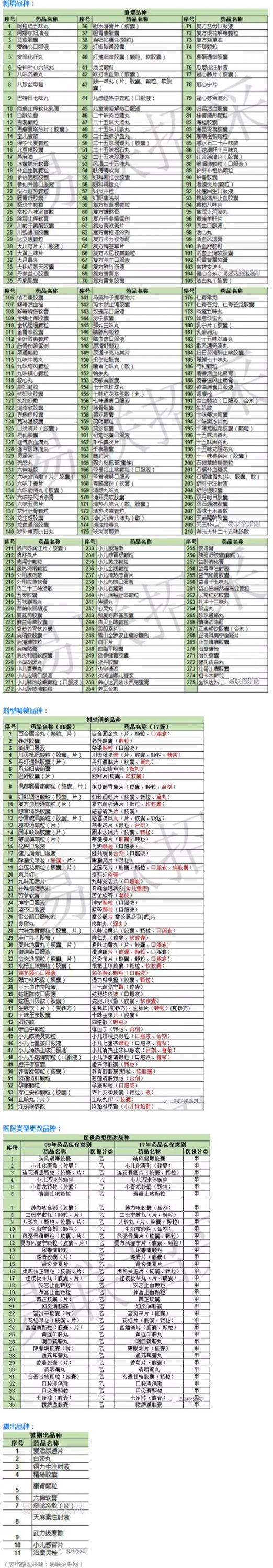 新版医保药品目录的调整有进有出,最后,我们一起来看看,本次目录调整的大咖,中成药新旧两版医保目录品种对比,来源于易联招采网整理。