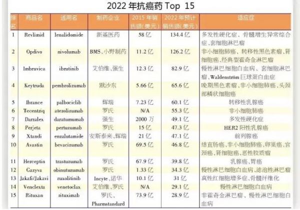 近期,FiercePharma发布了2022年15只最畅销抗癌药预测,预计到2022年,15只畅销抗癌药将创造近900亿美元的销售额,占昆泰IMS所统计的美国2014年制药市场总值的1/4。