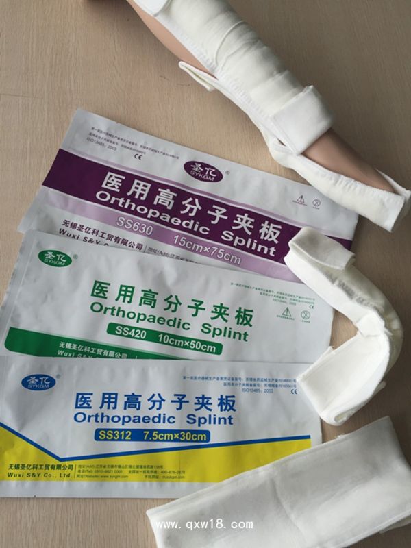 性能特点:医用高分子夹板具有使用方便、硬化快、硬度高、重量轻、透气性好、不怕水、透X射线摄片不用拆除、清洁环保、舒适安全等优点。不粘手,一次性使用,符合医用环保要求。医生操作更简便、患者使用更舒适。