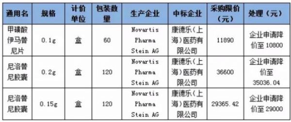 3月15日,云南省药品集中采购平台发布了《关于企业申请降价的公示》,本次申请降价的是由康德乐(上海)医药有限公司代理的诺华的两个品种——甲磺酸伊马替尼片和尼洛替尼胶囊三个规格的产品,均主要用于慢性髓性白血病的治疗。