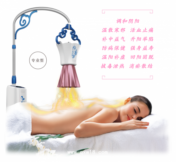 艾灸温补养生仪使用灸绒、灸油或其它药物放置体表的腧穴或疼痛烧约、温熨。借温炙的温和热力及药物作用,通过经络的传导,以养生美容、温通经脉、调和气血、协调阴阳、扶正祛邪,达到治疗疾病、防病保健之功效。