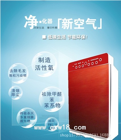 负离子空气净化器:是一种利用自身产生的负离子对空气进行净化、除尘、除味、灭菌的环境优化电器,其与传统的空气净化机的不同之处是以负离子作为作用因子,主动出击捕捉空气中的有害物质,而传统的空气净化机是风机抽风,利用滤网过滤粉尘来净化空气,称为被动吸附过滤式的净化原理,需要定期更换滤网,而负离子空气净化器则无需耗材。