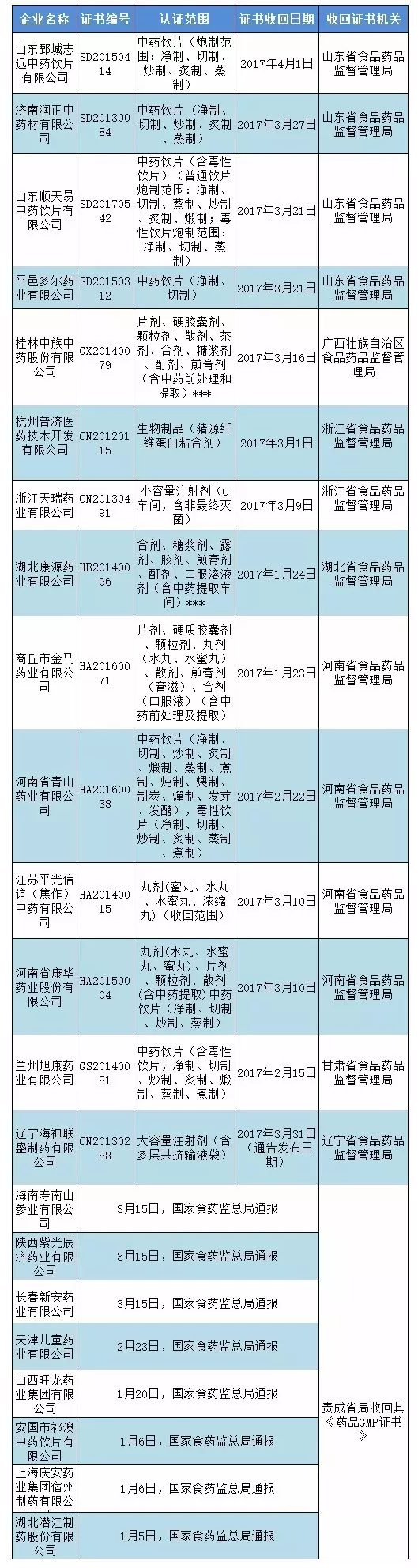 据不完全统计, 截至目前2017年共计有22家药企GMP证书被收回。其中8家为中药饮片企业。