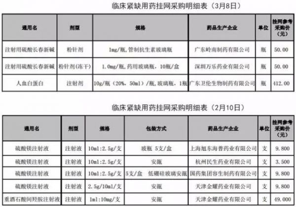 如“维生素K1注射液”,3月上海采购给出的参考价是7.35元/支,到了4月份,同样的规格,价格涨到了9.9元/支;“硫酸镁注射液”,2月价格是9.8元/支,4月上涨到15元/支。