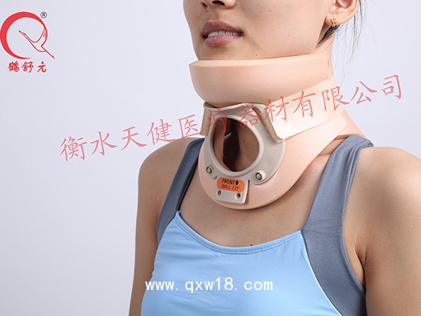 该颈托是由高分子泡沫塑料材料制成,根据人体肩颈的形状设计,颈托四周有透气孔、前后有塑料板加固,有粘扣,可调节大小,主要用于颈椎骨折固定,脱位复位固定等。由于重量轻,具有通气孔,进一步提高了佩带的舒适性。它具有防水功能,使用温水和中性肥皂很容易就可以清洁。