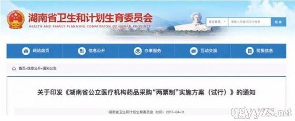 昨日(11日)上午,湖南省卫生计生委召开新闻发布会,发布了由省医改办、省卫计委、省发改委、省经信委等9部门联合出台的《湖南省公立医疗机构药品采购“两票制”实施方案(试行)》(下称《方案》)。