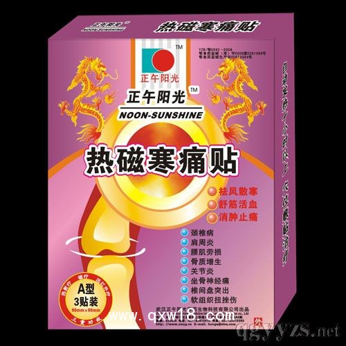 热磁寒痛贴,批准文号:鄂食药监械(准)字2014第2261086号,医疗器械招商企业武汉正午阳光医药生物科技有限公司招商产品,该产品适用于因颈椎病、肩周炎、腰肌劳损、骨质增生、关节炎、坐骨神经痛、椎间盘突出、软组织扭挫伤等所致的各种疼痛.热磁寒痛贴招商详情请进入>>