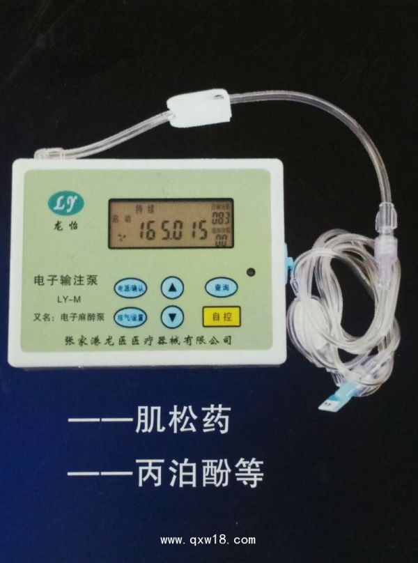 术中电子麻醉泵为用于外科手术持续静脉麻醉的新一代麻醉耗材产品,是全国首个可用于术中麻醉的电子输注泵,由苏州市张家港龙医医疗器械有限公司研制并生产,2015年12月通过了国家食品药品监督管理局的技术审评,取得注册证,注册证编号:国械注准20153542043。