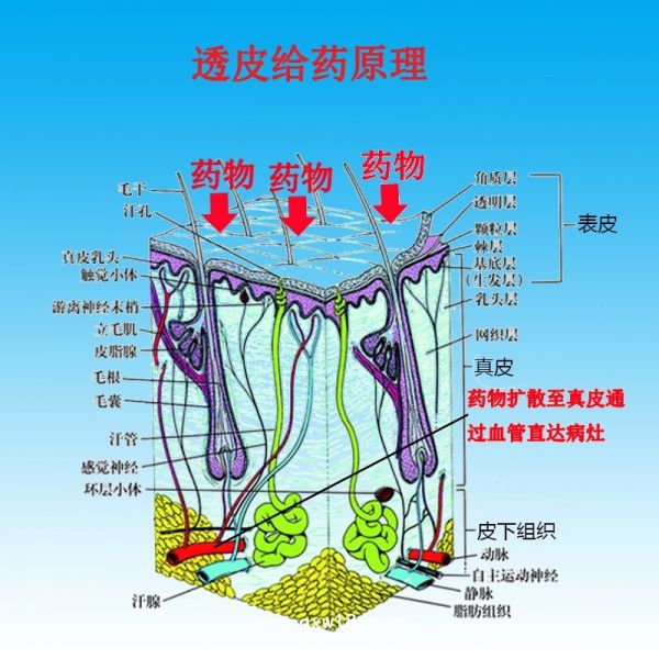(3)直接:靶向透过皮肤进入病灶,直接起效。缩短疗程1/3~1/2,提高床位轮换率。
