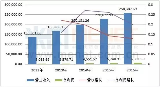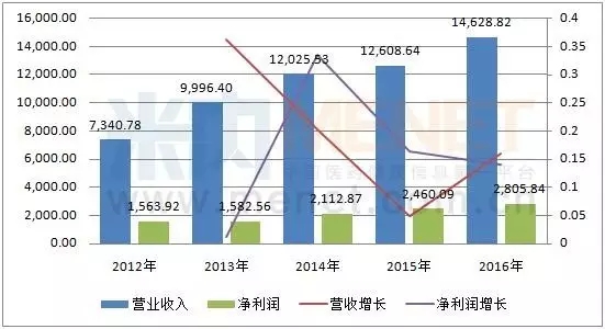 从经营情况来看,2014年起,复星医药的营业收入增速开始放缓,2016年的营业收入超过了146亿元,净利润增速同样放缓,2016年净利润为28亿元。