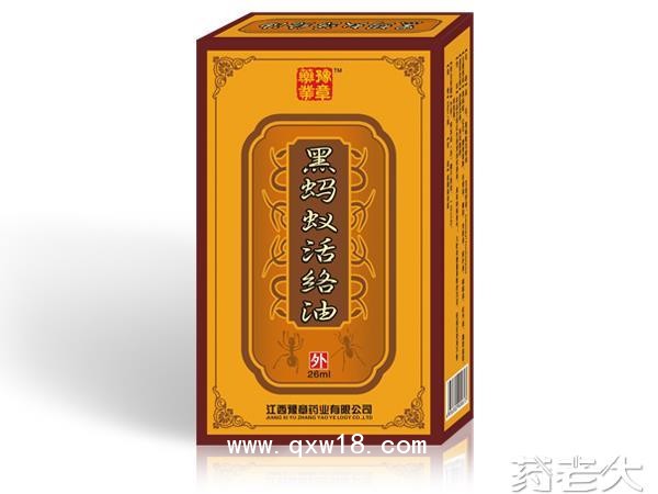 黑蚂蚁活络油能够祛风除湿、舒筋活络、消肿止痛、祛瘀散寒颈椎病、肩周炎、腰肌劳损、骨质增生、坐骨神经痛、风湿性关节炎。