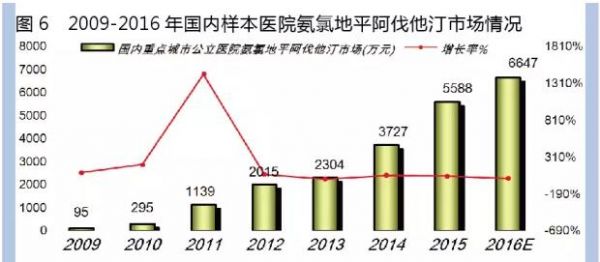 氨氯地平阿托伐他汀钙片是美国辉瑞在中国上市的独家产品,商品名为多达一。2016年国内重点城市公立医院多达一用药金额为6000多万元,同比上一年增长18.95%,是复方降压降胆固醇药物中的惟一品种。