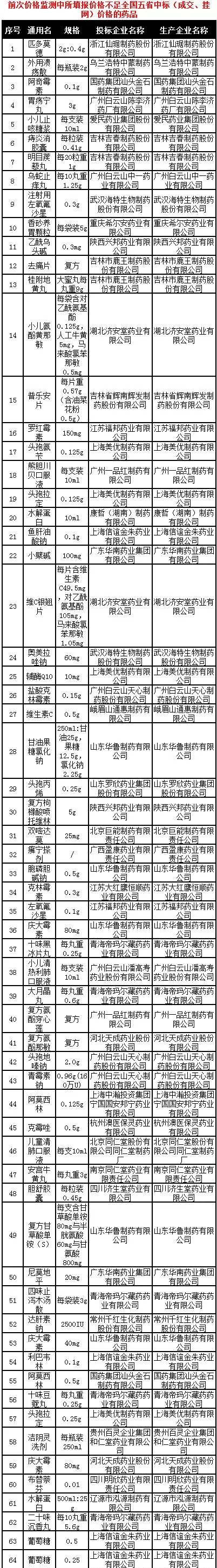 其中包括前次价格监测中未填报价格的364个药品;前次价格监测中所填报价格不足全国五省中标(成交、挂网)价格的药品以及根据自治区物价局文件调出低价药、经自治区药监局再次资质审核通过的药品品规,共有126个。