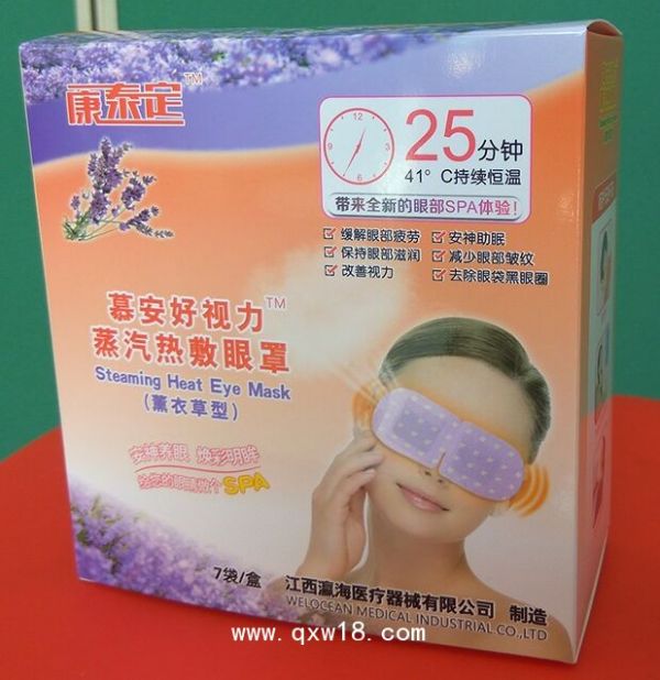 蒸汽热敷眼罩用于缓解眼部疲劳,保持眼部滋润,改善视力,安神助眠,减少眼部皱纹,去除眼袋、黑眼圈。该产品是医疗器械招商企业江西瀛海医疗器械有限公司招商产品。招蒸汽热敷眼罩商详情请进入>>