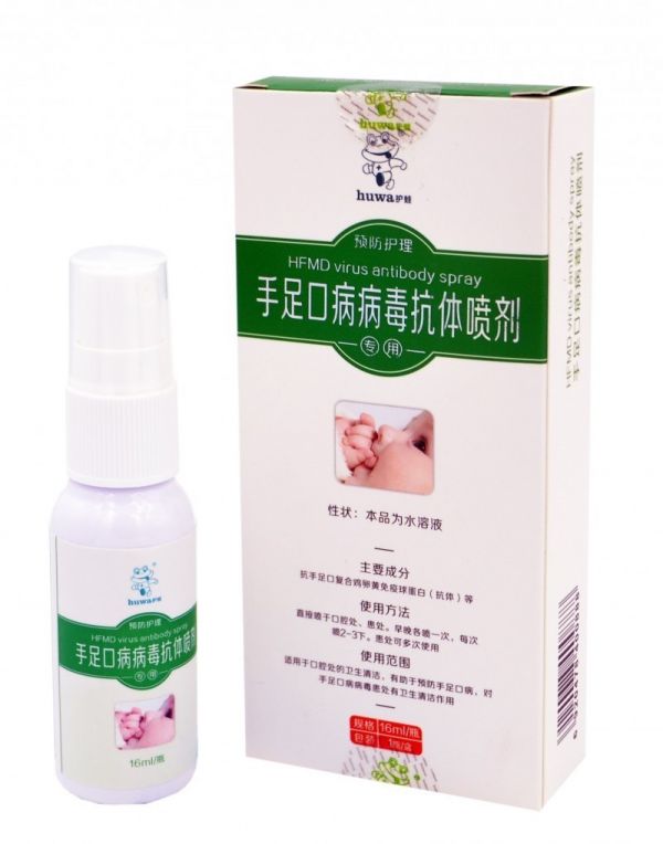 护蛙手足口病毒抗体喷剂,适用于儿童手足口病的预防及辅助治疗。采用鸡卵黄抗体蛋白为原料,为新一代高科技生物特异性抗体制剂,可快速高效、中和抑杀手足口病病毒,有效阻断手足口病毒的传播和对人体的入侵,如同建立一套有效的隔离病毒的“防火墙”,起到预防保护的作用。经美国FDA及国家疾控中心认定,安全无毒,适合孕妇、婴幼儿及老人使用。经中国军事医学科学院微生物流行病研究所、省疾病预防控制中心检测,对手足口病毒具有快速灭活作用。