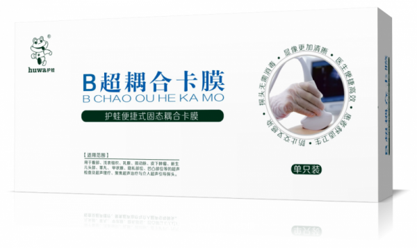 “护蛙便捷式固态耦合卡膜”的结构组织密度近似人体组织,而且物理性能稳定,在检测中超声波反射损失少、产生的声特性阻抗小、声衰减系数小。所以,B超设备在使用护蛙耦合卡膜后,显像对比传统耦合剂的清晰度有20-30%的提高。提升了原有超声设备的质量档次,使其具有高传导率,从而获得的图像更清晰,有利于发现早期病变和轻微病变。进一步提高了医生的诊断率,为人类的健康发展具有深远意义。