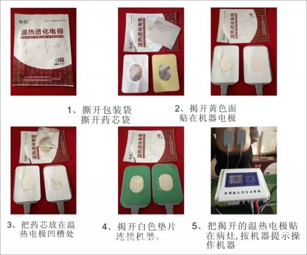 如医温热透化电极片,一次性理疗电极片,医保收费项目与中、低频治疗仪配套使用。一次性温热透化电极片用于传导脉冲治疗仪发出的脉冲信号。由胶贴和药芯组成,药芯由30多名贵中草药提成磁化的药液浸泡而成,在仪器正负电极脉冲和热疗的共同作用下把药物分子快速达到病灶深处,让患者在做物理理疗的同时可以将药物分子导入患处,提高了理疗的效果。