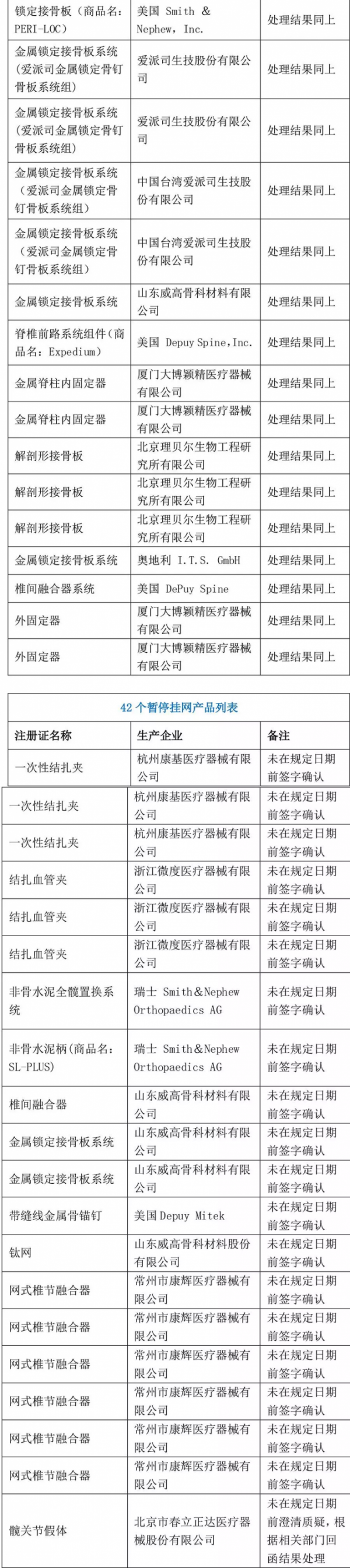 按照《关于对部分高值医用耗材挂网产品参考价格质疑信息进行确认的通知》(川药械采〔2017〕94号)、《关于对部分高值医用耗材挂网产品参考价格质疑信息进行确认的通知》(川药械采〔2017〕98号)要求,逾期未完成签字确认或未递交相关澄清(证明)材料的产品,将暂停挂网资格,待企业现场确认、递交澄清材料后再分批次进行处理。