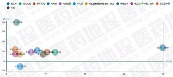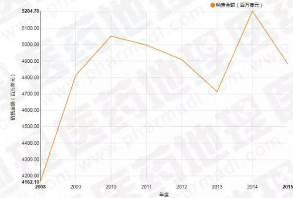 根据中国医药工业信息中心PDB数据库的统计数据,从全球范围来看,近年来镇痛药整体市场稍显疲态。2015年超70%的镇痛产品销售出现负增长。