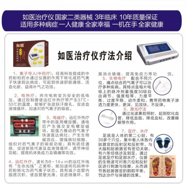 中国梦,健康梦”,为响应国家推广家庭理疗,有效治疗和控制中老年慢性疾病的号召,如医治疗仪厂家,特在全国招募1000家如医健康爱心服务站,凡有颈椎病、腰椎病、肩周炎、膝关节疾病、骨质增生、股骨头坏死、风湿类风湿等慢性骨病患者均可以就近咨询、体验。如医中频激光综合治疗仪招商详情请进入>>