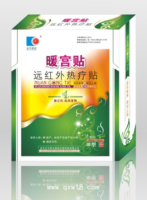 正午阳光暖宫贴依据中医内病外治理论和经络传导治疗原理,将穴位灸热疗法和远红外物理疗法相结合,通过对气海穴的远红外温热熨灸,通经络、正血脉,激活子宫的活动机能,促进血管、子宫正常收缩,加快子宫内组织的修复生长,消除妊娠纹,加快产后恶露的排出,增强免疫力,防治产后腹痛,同时,抵御各种细菌对子宫的侵害,具有温经散寒,暖宫止痛,调和气血之作用,有效防治“月子病”。同时。远红外温热理疗的显著特性,可加速血液循环及身体微循环系统的新陈代谢,平衡激素分泌,消除产后面部黄褐斑。
