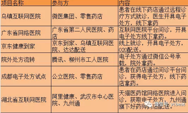 表1:电子处方试点已有案例