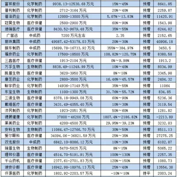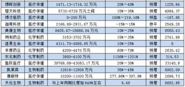 还有智飞生物、东北制药两家企业预增10倍以上,天坛生物预增8倍以上,还有其他10余家药企增速在100%以上。