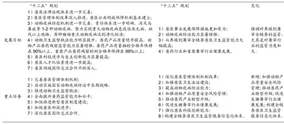 全国兽医卫生事业“十三五”规划与“十二五”规划对比