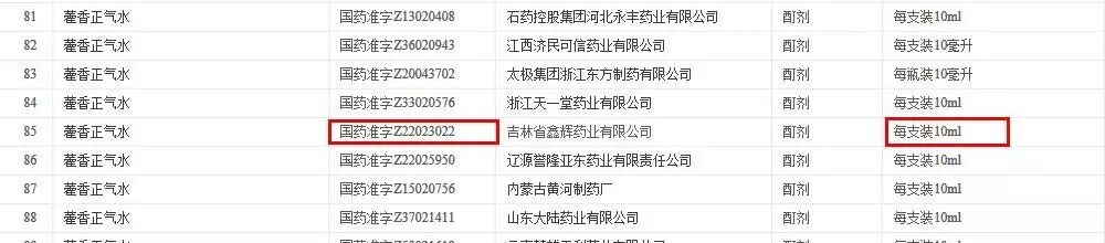 ▲食药监总局官网显示,该企业所生产的藿香正气水批准文号为“国药准字Z22023022”,规格为每支装10ml。