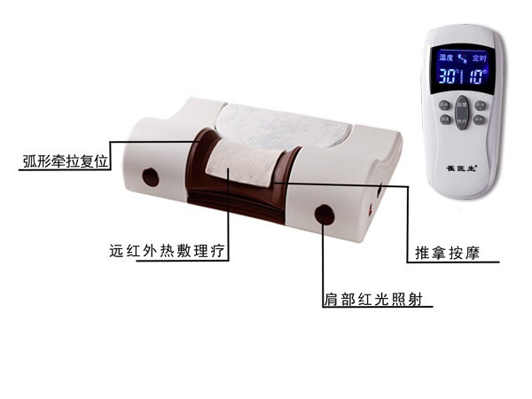 该治疗仪还附加了颈部远红外热敷理疗、肩部红光照射理疗及中药离子透入功能,结合仪器的推拿按摩,及牵拉复位,可以达到活血化瘀、舒筋通络、整复错缝、消炎散湿的功效,有效缓解颈椎病带来的酸、麻、涨、痛等症状。
