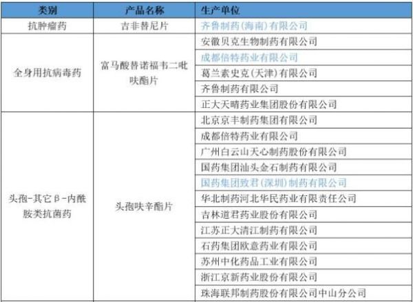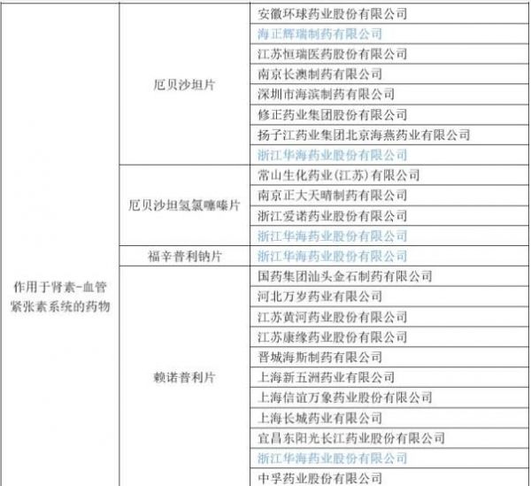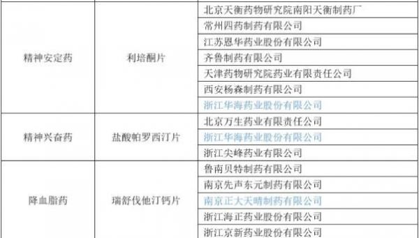 已通过一致性评价品种的国内仿制药企业情况(蓝色字企业为这些品种第一批通过一致性评价的企业):