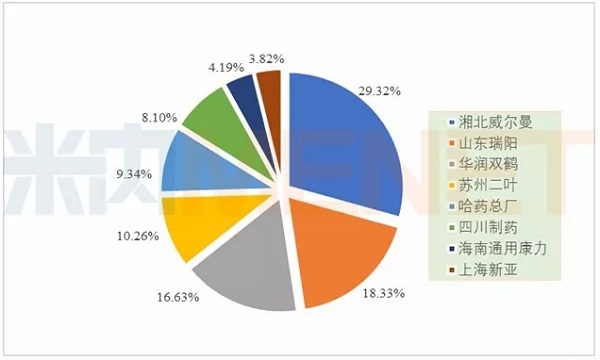 2017年1~3季度TOP5的国产品牌里,华北制药的强林坦占24.12%,珠海联邦的联邦他唑仙占19.73%,海南通用三洋的凯伦占14.21%,齐鲁天和惠世的邦达占10.61%,山东瑞阳的瑞阳永康占8.13%,国产药以性价比高和品规多的特点占领了市场。