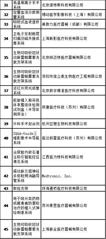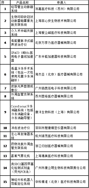 表格 1:进入特别审批通道名单: