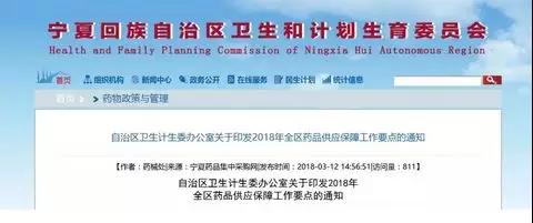 近日,宁夏卫计委办公室发布《关于印发2018年全区药品供应保障工作要点的通知》(以下简称《通知》),释放了一个重磅消息:宁夏将通过财政补助或医保报销等方式实现基本药物免费使用,推动基本药物公平可及。