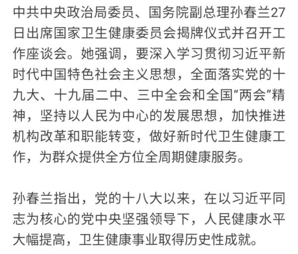 3月27日,国家卫健委正式揭牌,国务院副总理孙春兰出席并讲话,重点提了卫健委新使命、新理念,几个方面特别值得业界同仁关注。