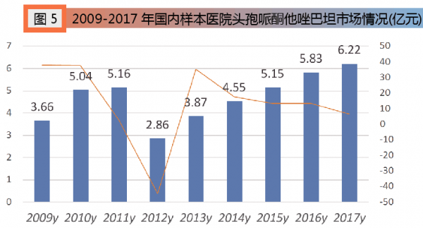 头孢哌酮他唑巴坦注射剂是国内开发上市的新药。截至2017年,CFDA共批准国内9家企业生产该品种,相比头孢哌酮舒巴坦注射剂生产厂商少很多。头孢哌酮他唑巴坦注射剂虽然上市较晚,生产厂家较少,却在复方头孢菌素市场居第二位。